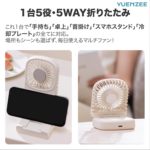 ユエンジー(YUENZEE)「2025年新モデル」冷却プレート搭載 折りたたみ式 携帯扇風機 – 静音・強風・USB充電式・卓上&ハンディ・LCDディスプレイ付き