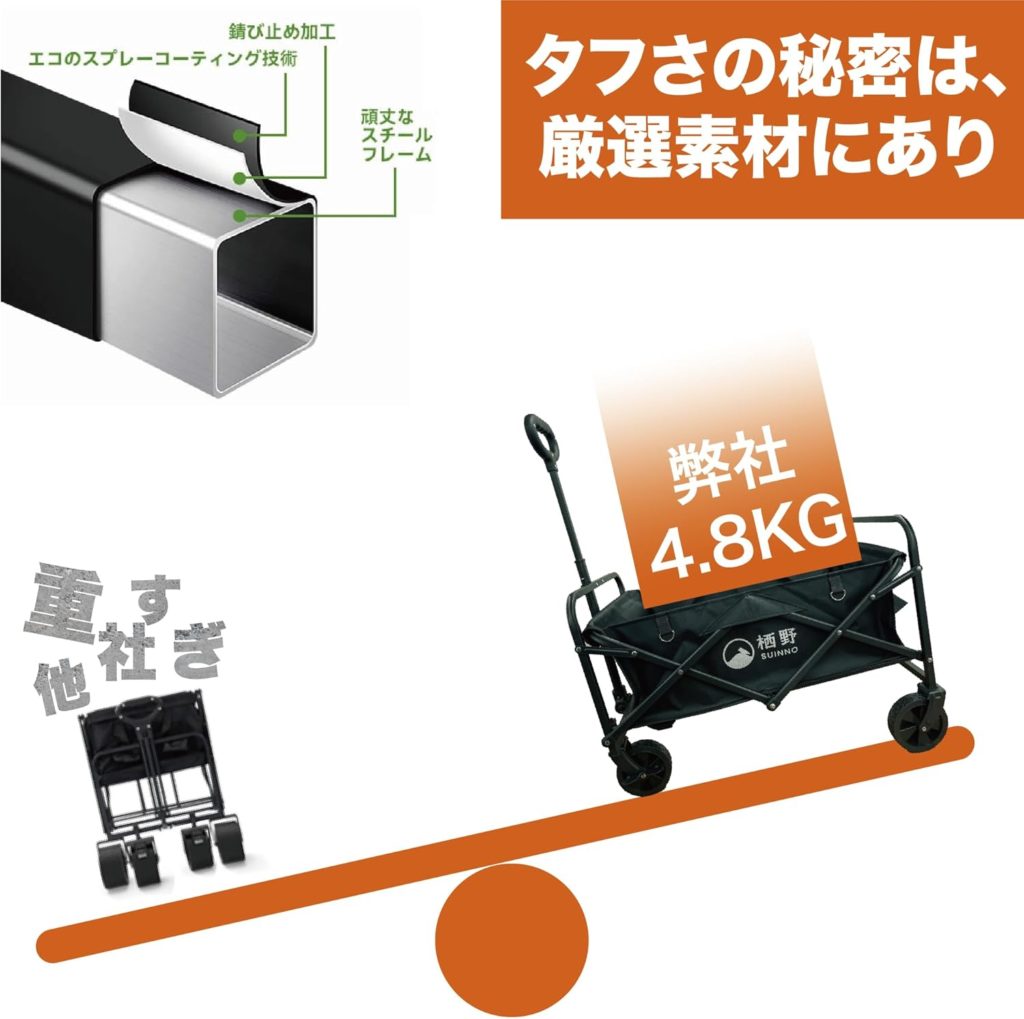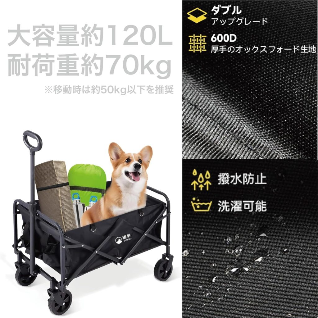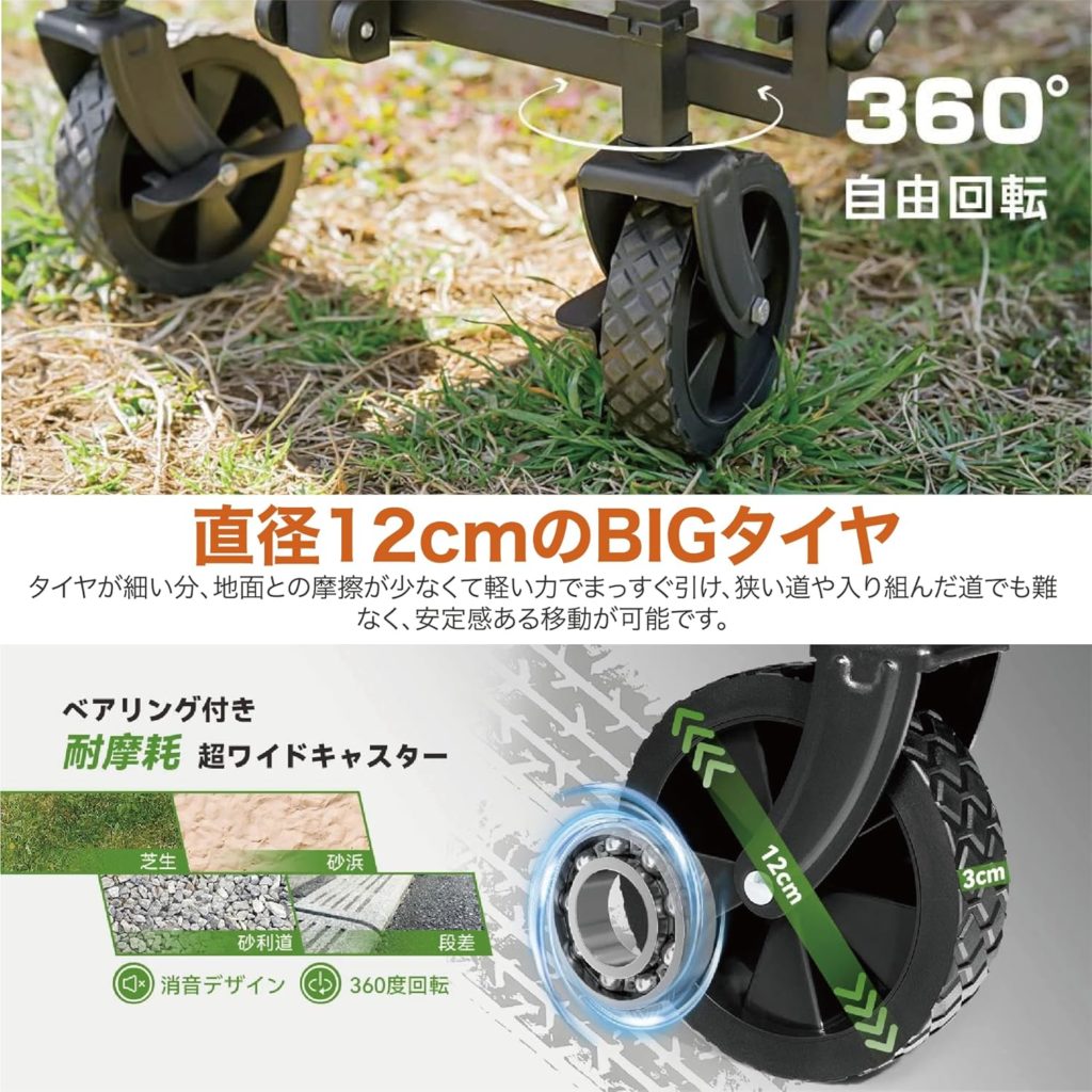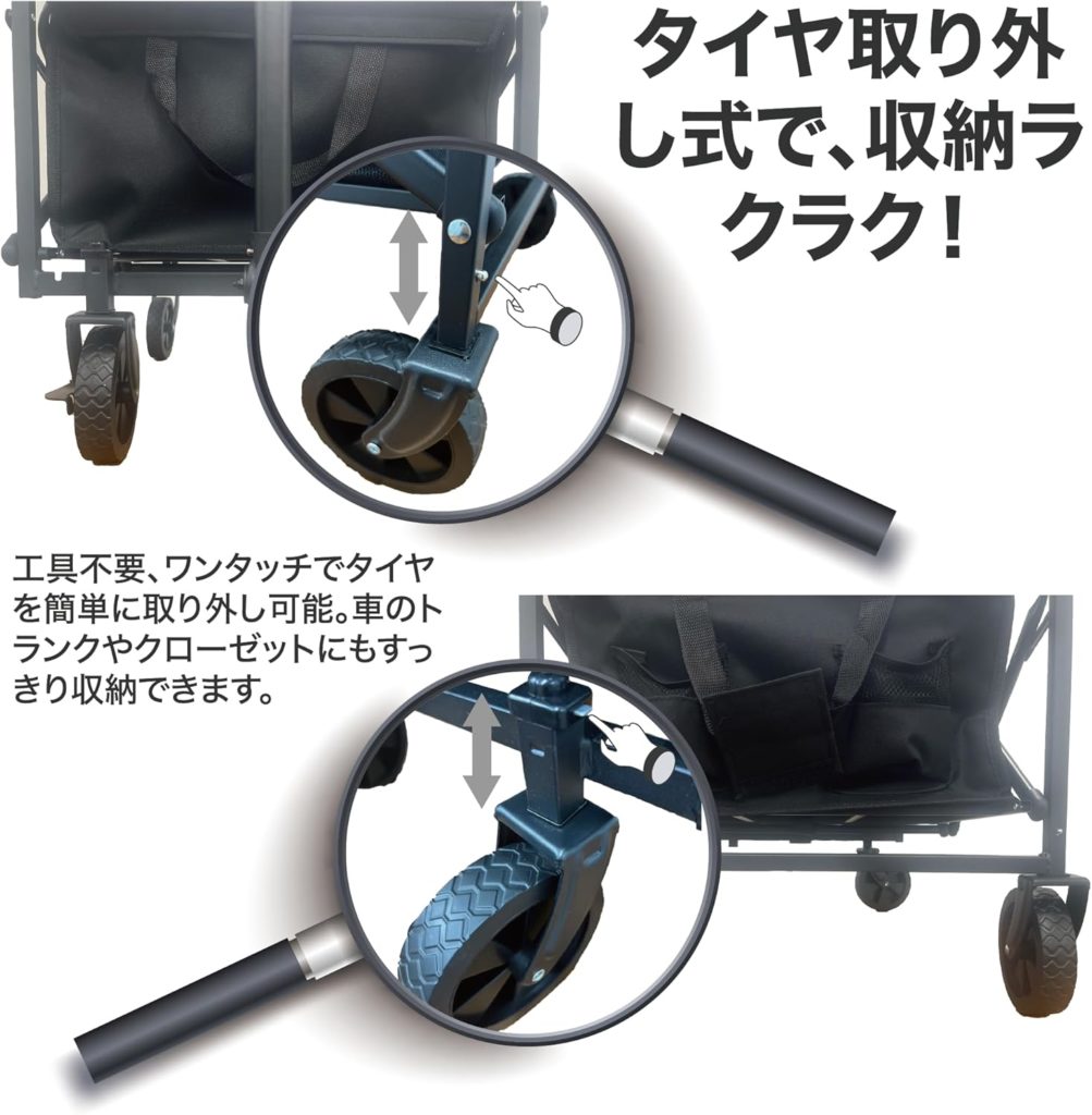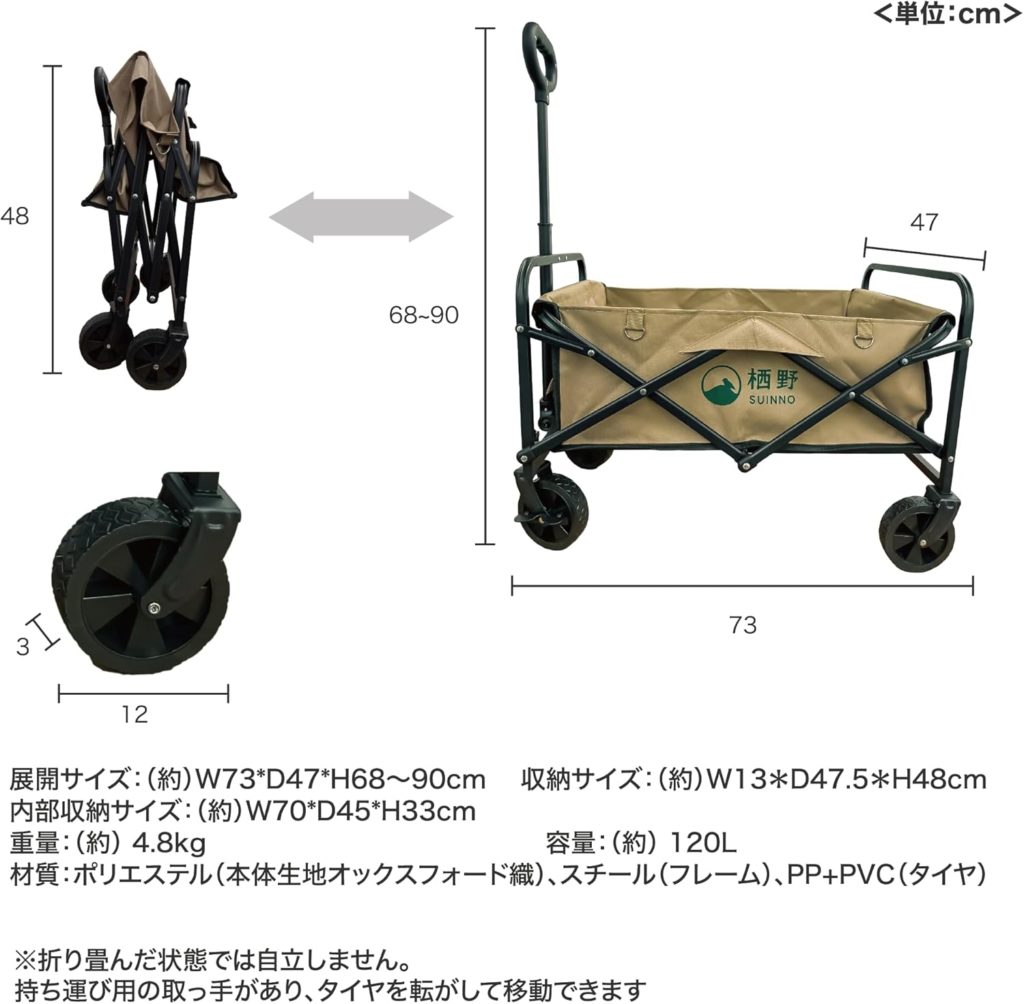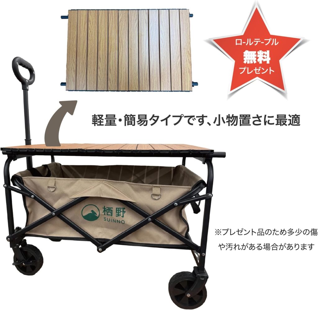 【SUINNO スイノ】折りたたみアウトドアワゴン サイドオープン式 ロールテーブル付き 軽量4輪カート 耐荷重約70kg、容量120L 着脱式タイヤ搭載 アウトドア・キャンプ・BBQ・釣り・引っ越し・買い物に最適